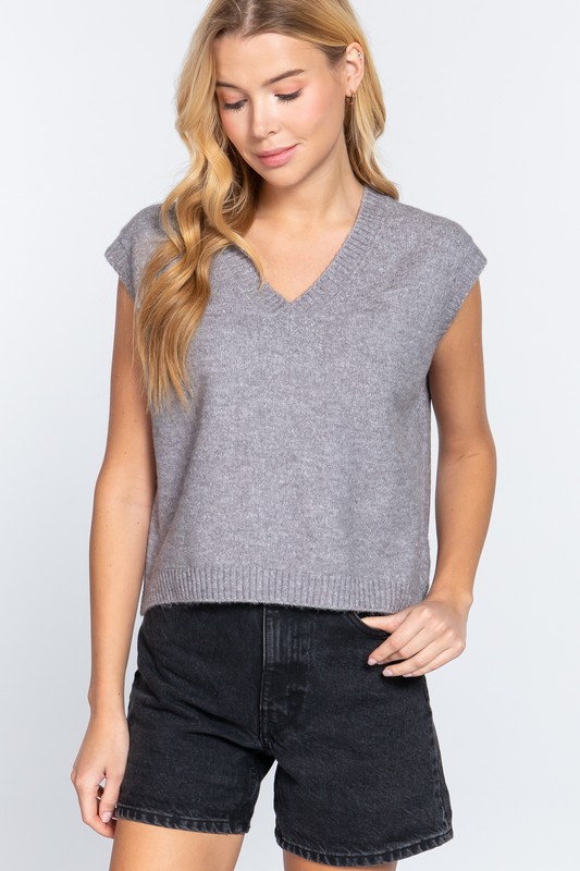 Womens V-Neck Cropped Sweater Vest in heather gray