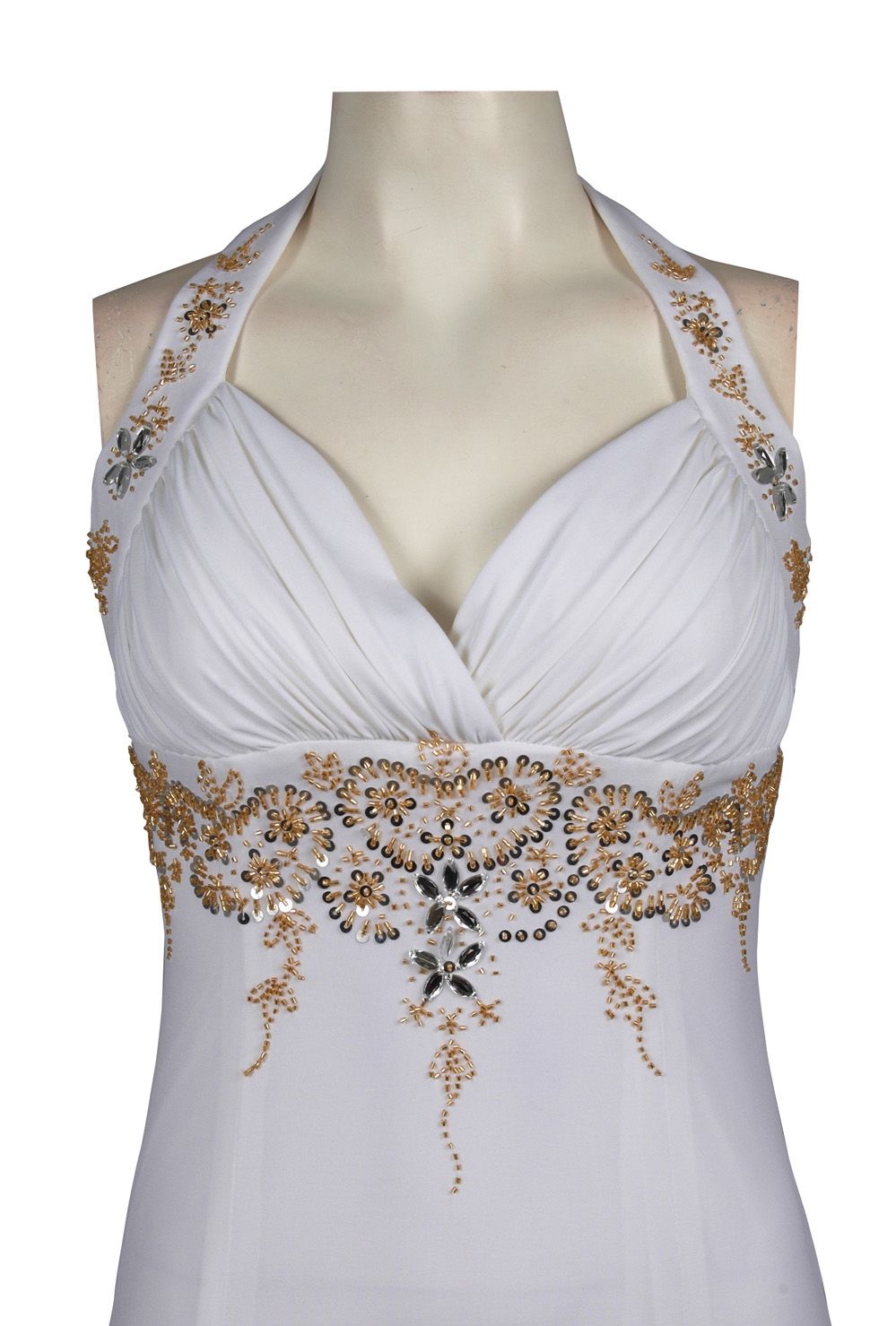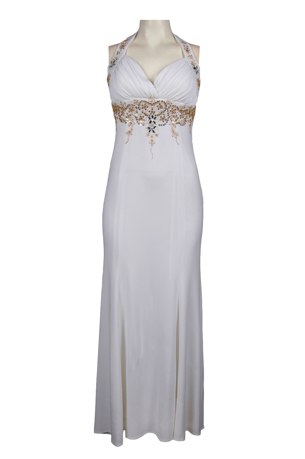 Cross Back Beaded Matte Jersey Dress. Fully lined. by Adrianna Papell. The sweeping train in the back only adds to the elegance of this dress. Perfect for any formal occasion. Would make a beautiful beach or causal wedding dress with the train built in. The bead work is perfection and adds to the elegance of this dress. The Jersey fabric is form fitting, but with plenty of stretch to be all day comfortable
