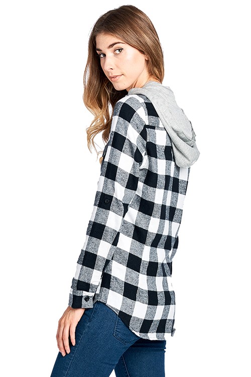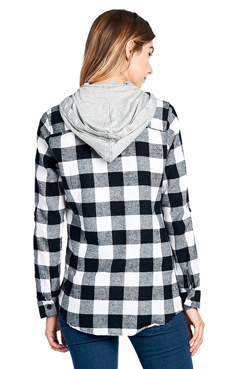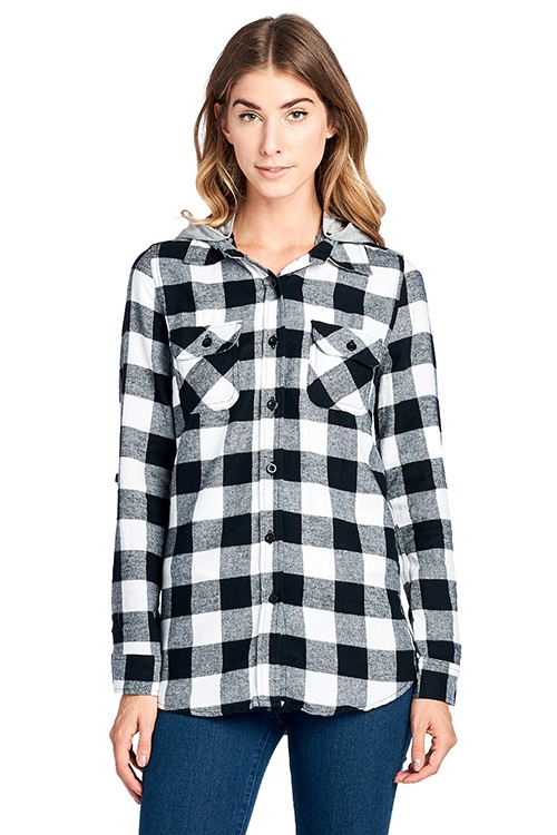 Roll up long sleeve, plaid pattern, button down shirt. Casual loose fit, front pocket decoration