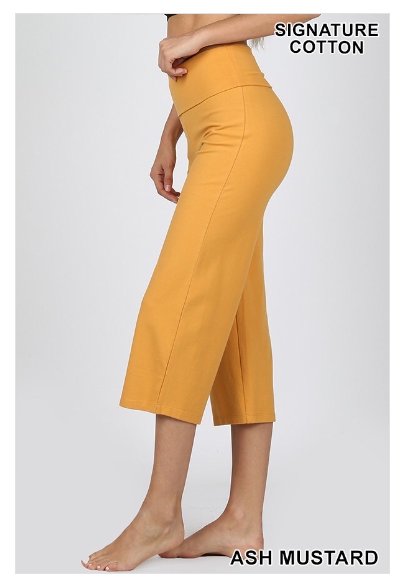 SIGNATURE COTTON FOLD-OVER YOGA CAPRI PANTS (HIGH QUALITY COTTON 260 GSM)
