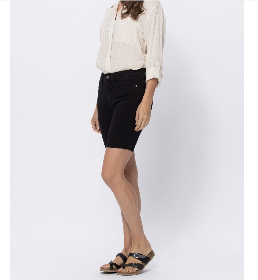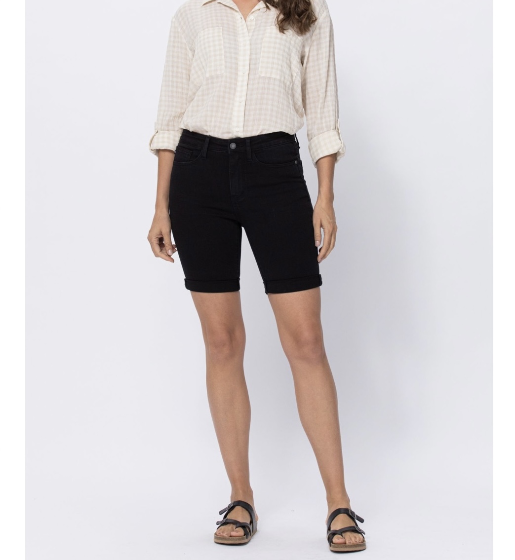 HI-RISE CUFFED BERMUDA SHORTS, high stretch and super comfortable