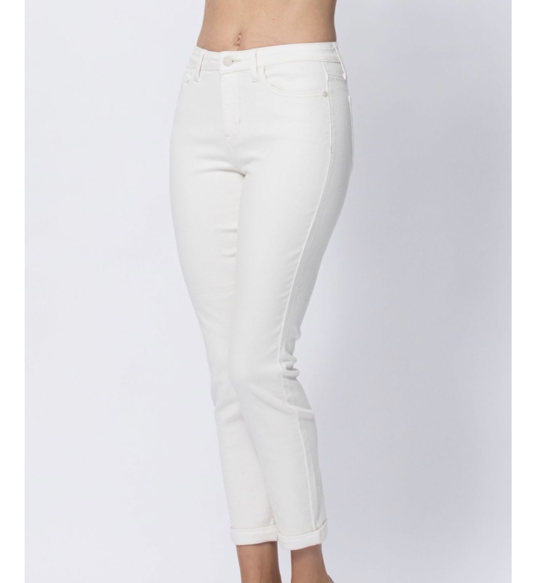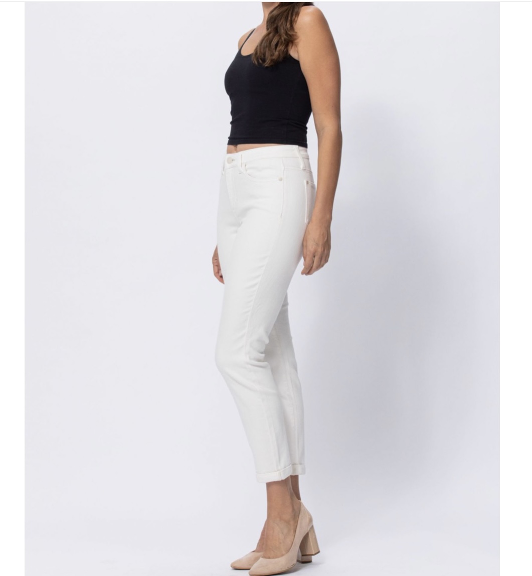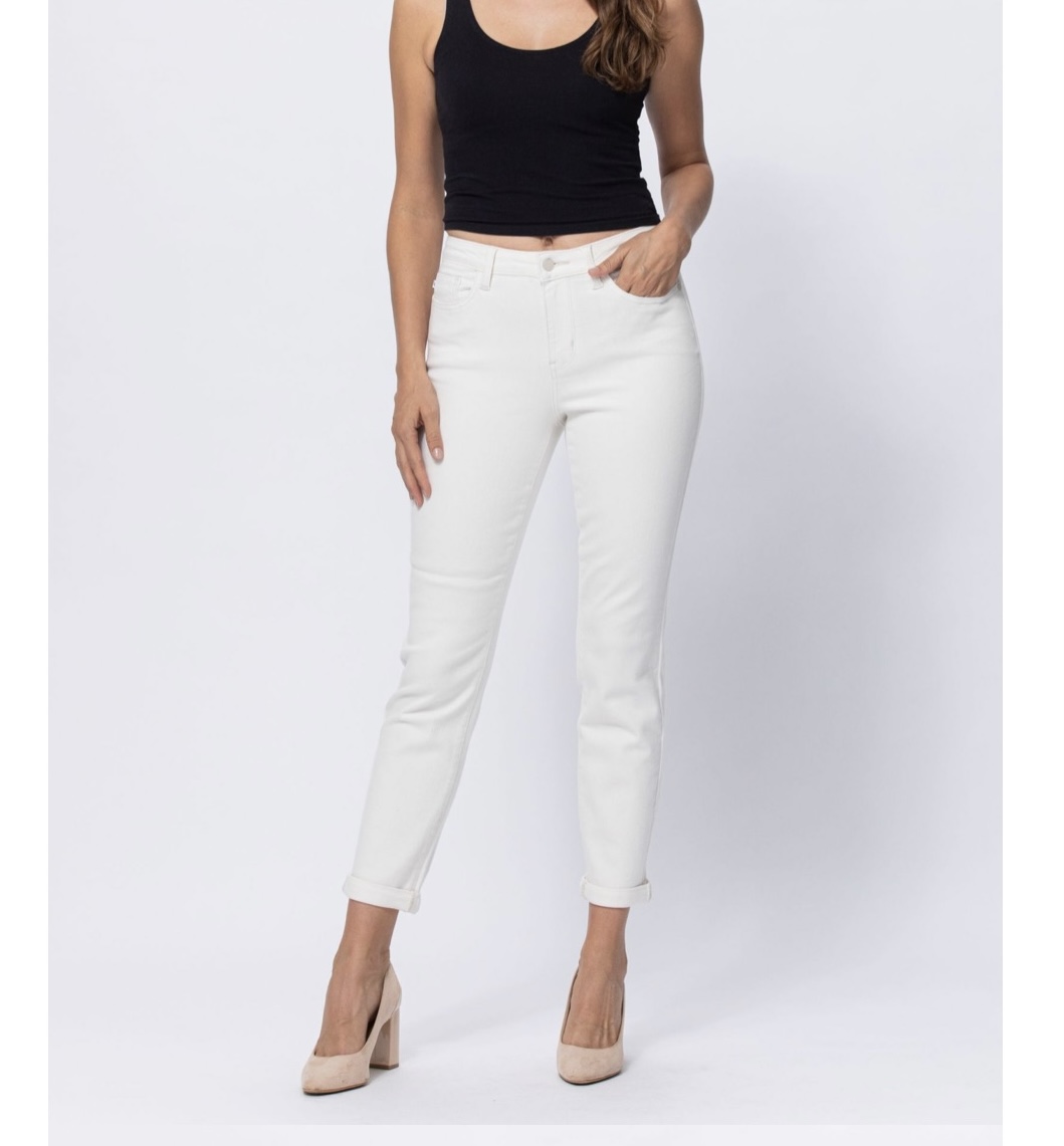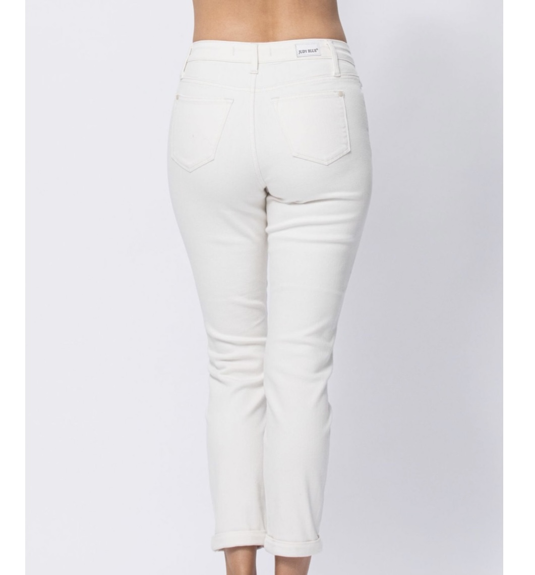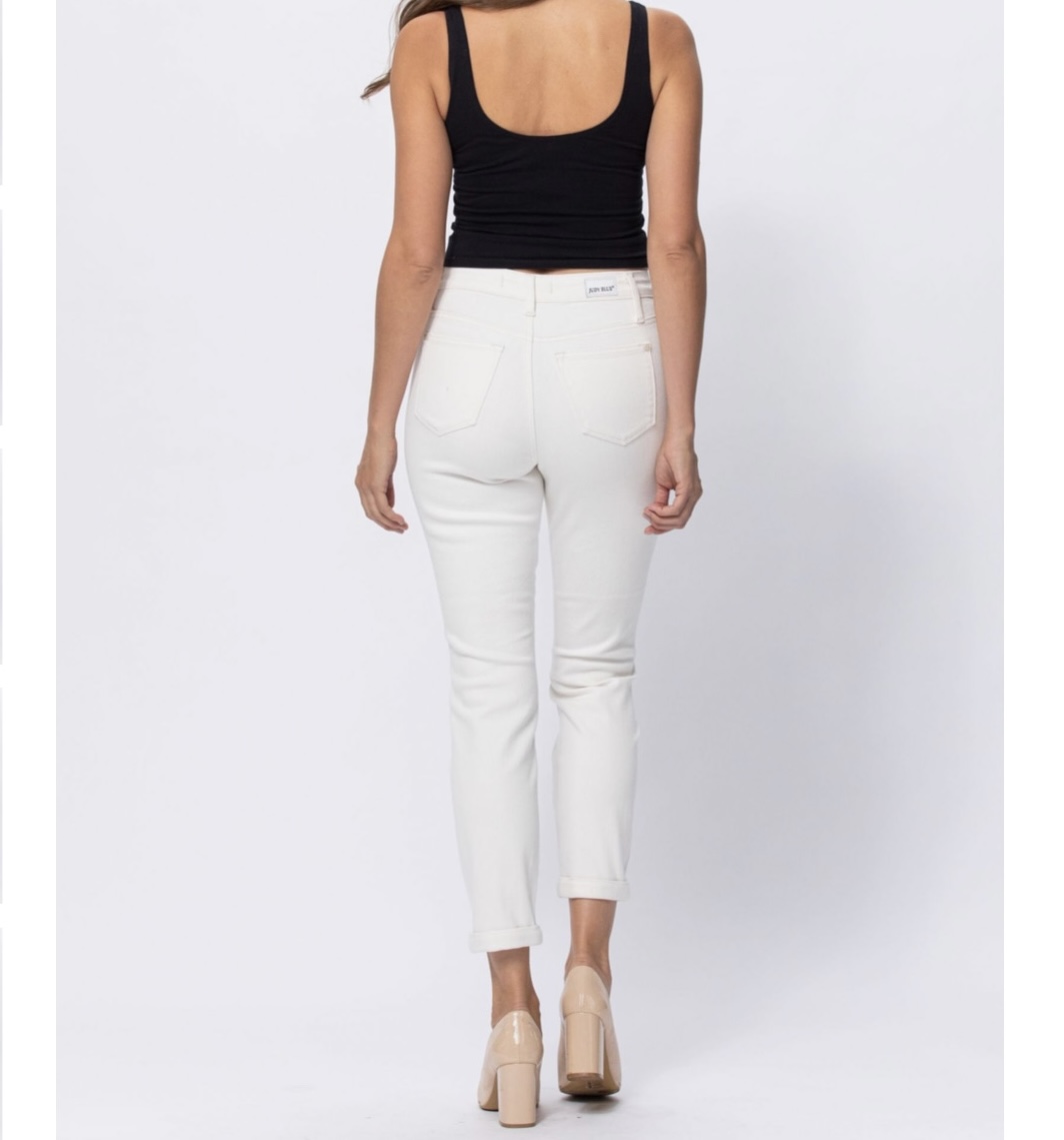 HIGH RISE WHITE CUFFED BOYFRIEND