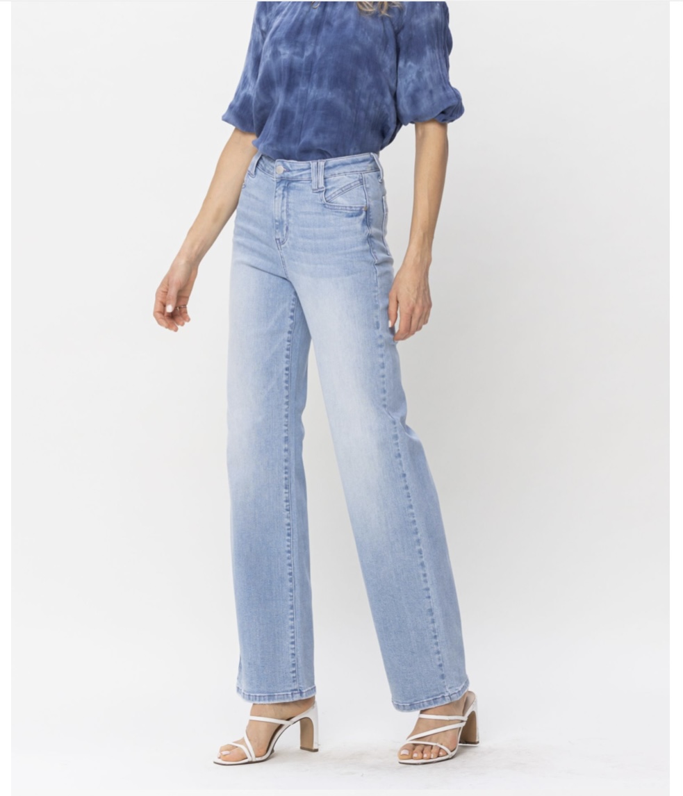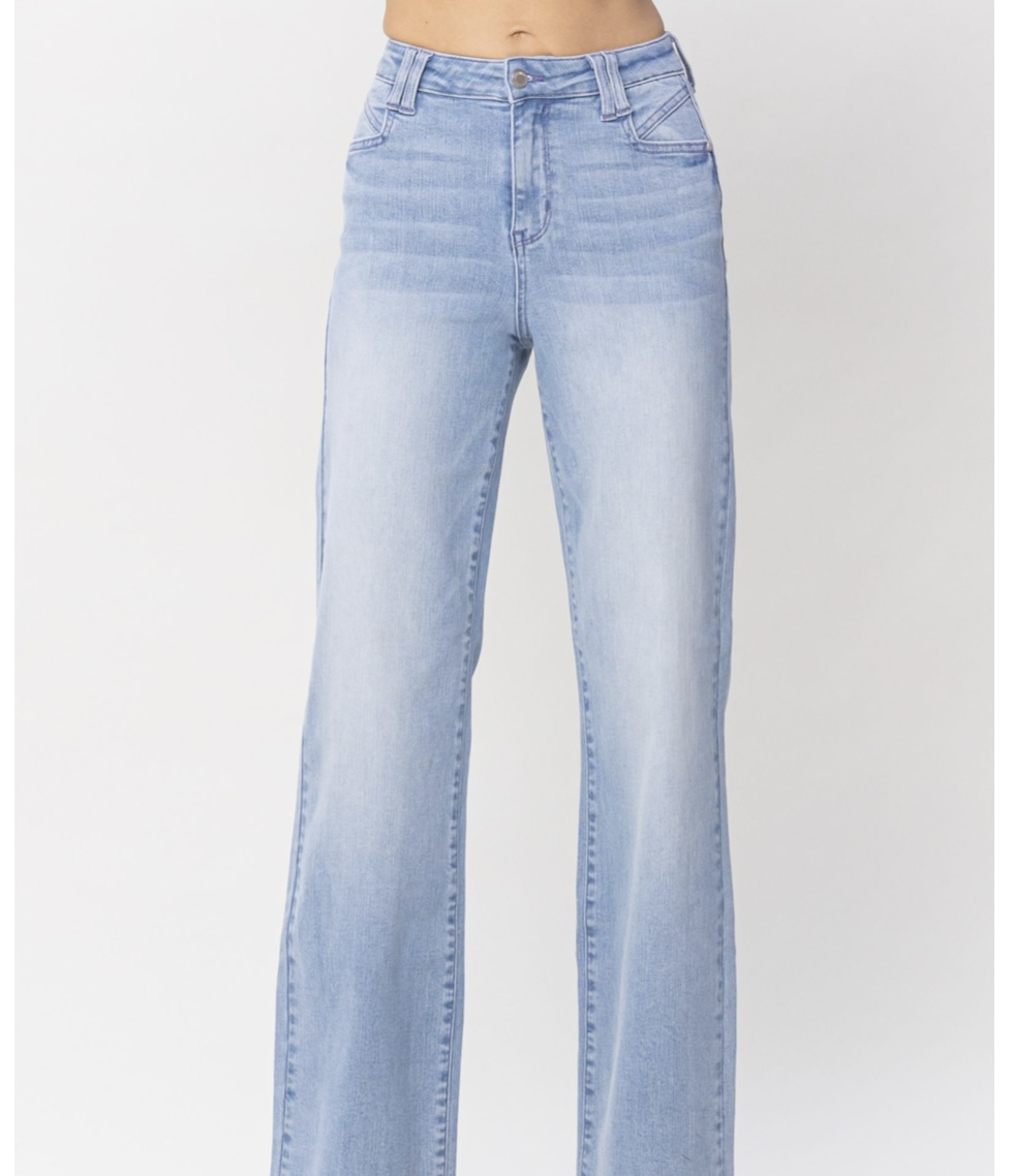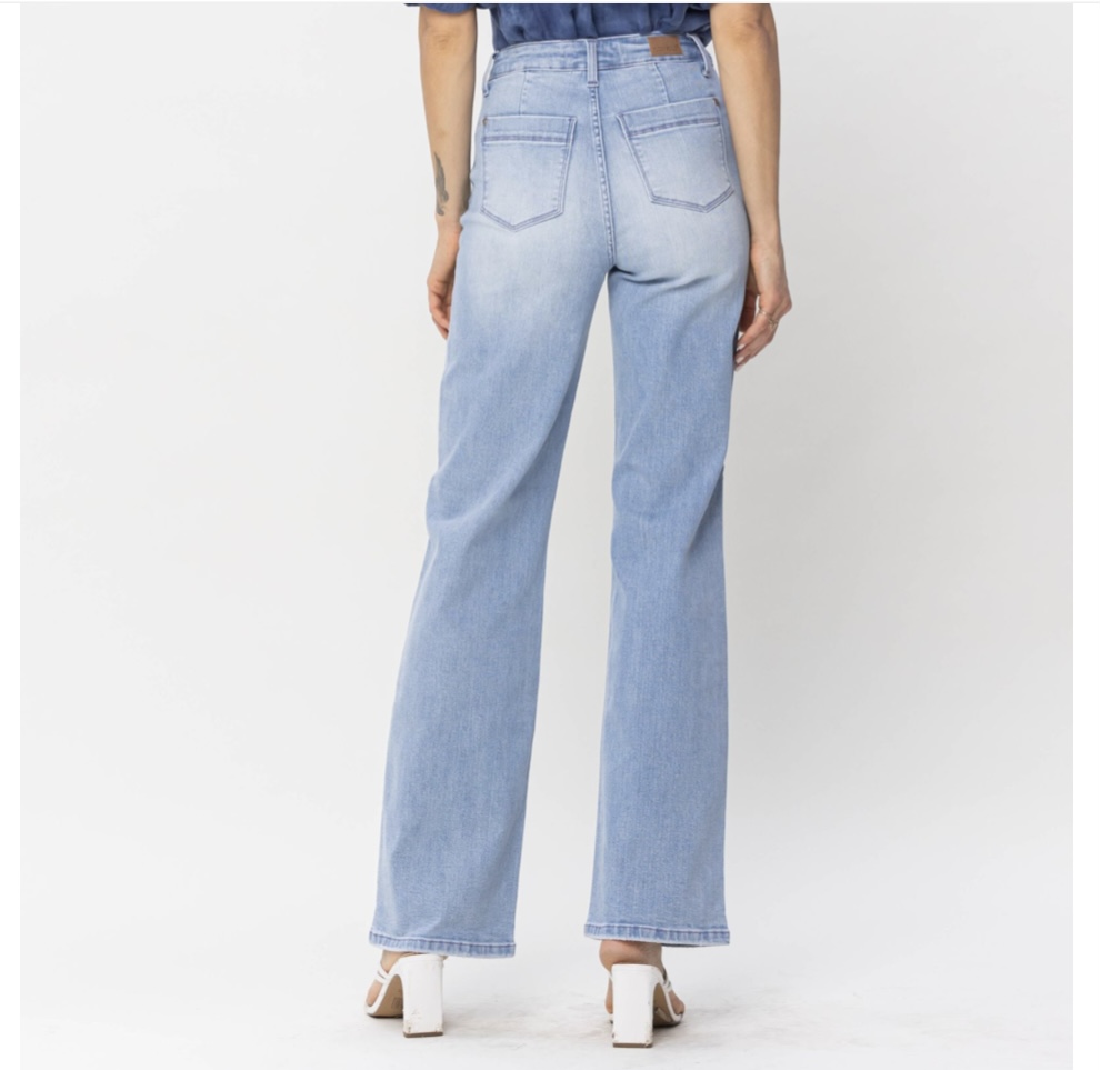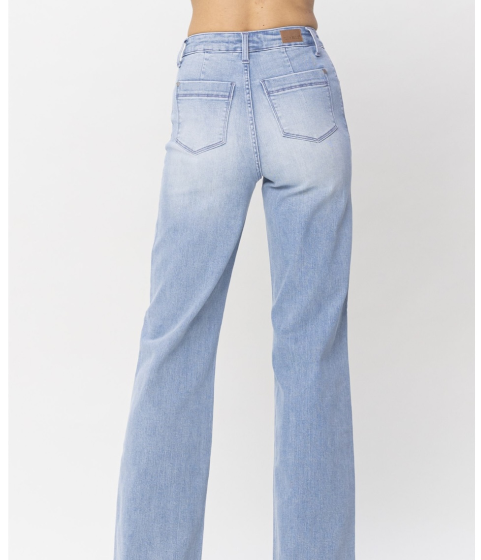 HIGH WAIST POCKET DETAILS WIDE LEG JEANS