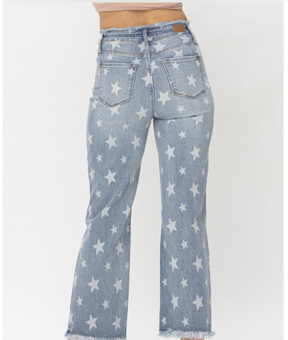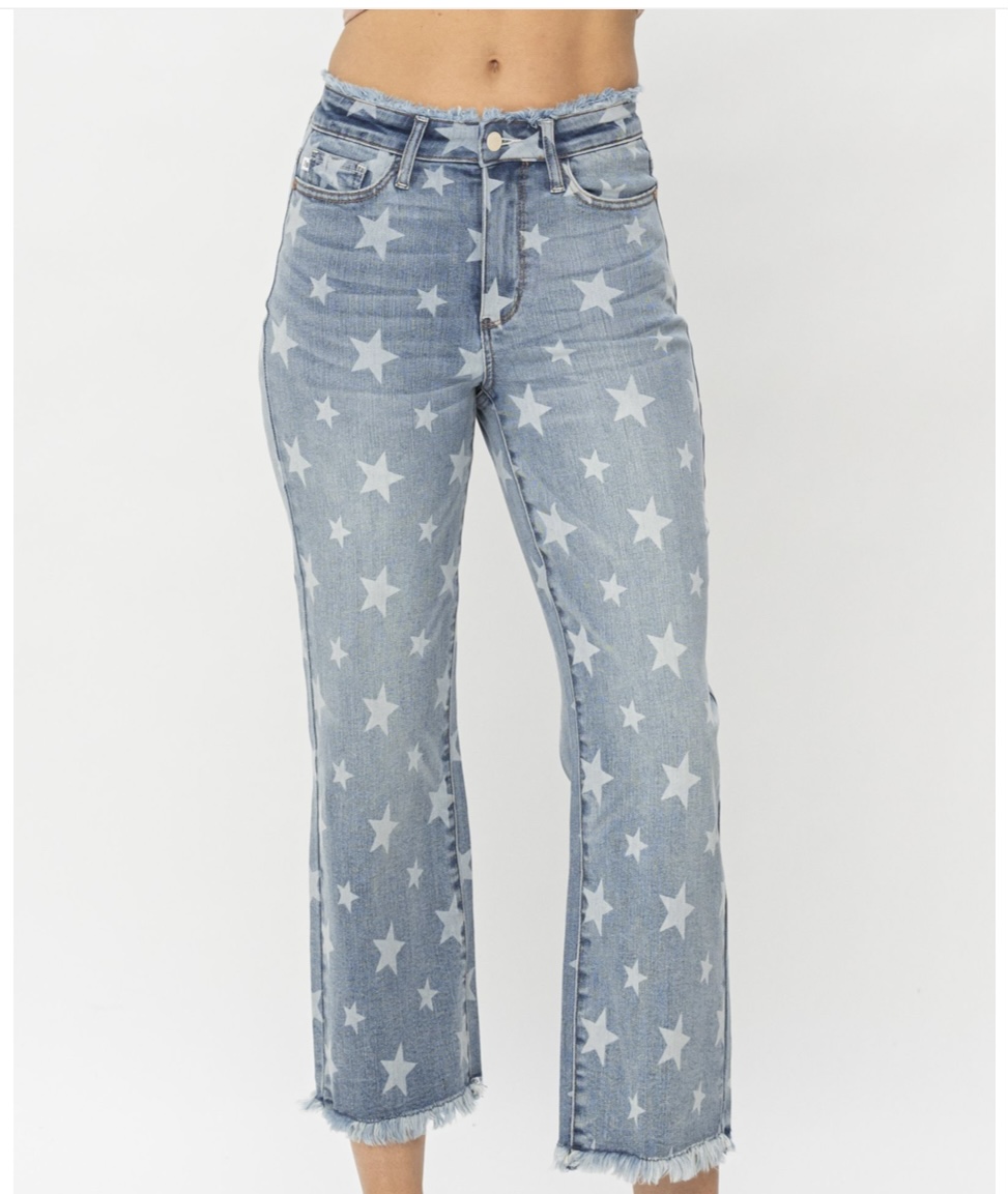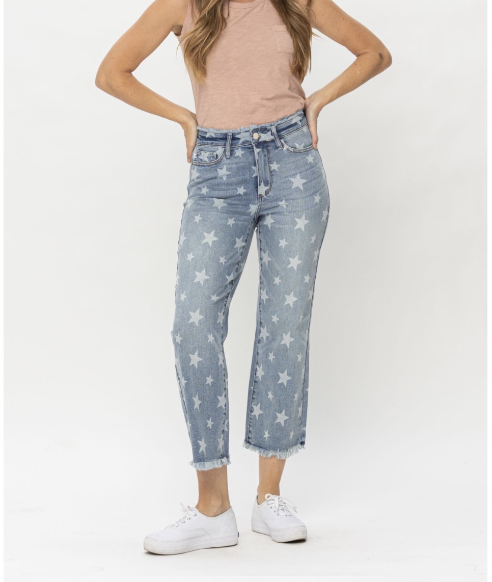 HIGH WAIST STAR PRINT CROPPED STRAIGHT