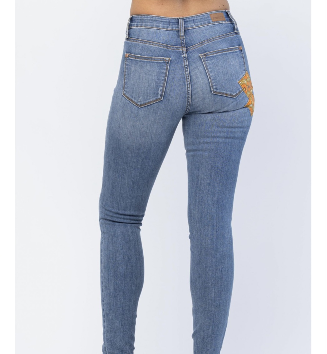 MID-RISE 70'S PATCH SKINNY
