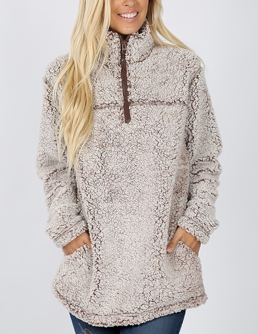 UNIQUE DYED SOFT SHERPA HALF ZIP PULLOVER SIDE POCKETS - GOOD QUALITY SHERPA - RELAXED FIT - SUPER SOFT