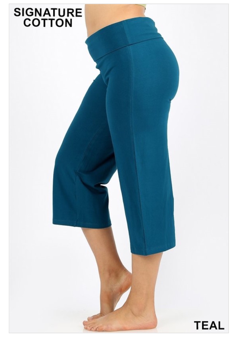 PLUS SIGNATURE COTTON FOLD-OVER YOGA CAPRI PANTS (HIGH QUALITY COTTON 260 GSM)