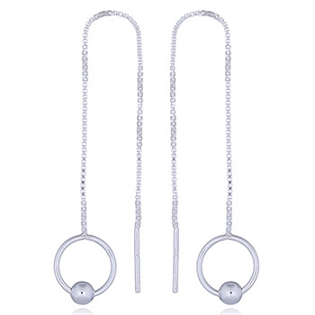 Open circle with 4mm balls in sterling 925 threader pair of earrings