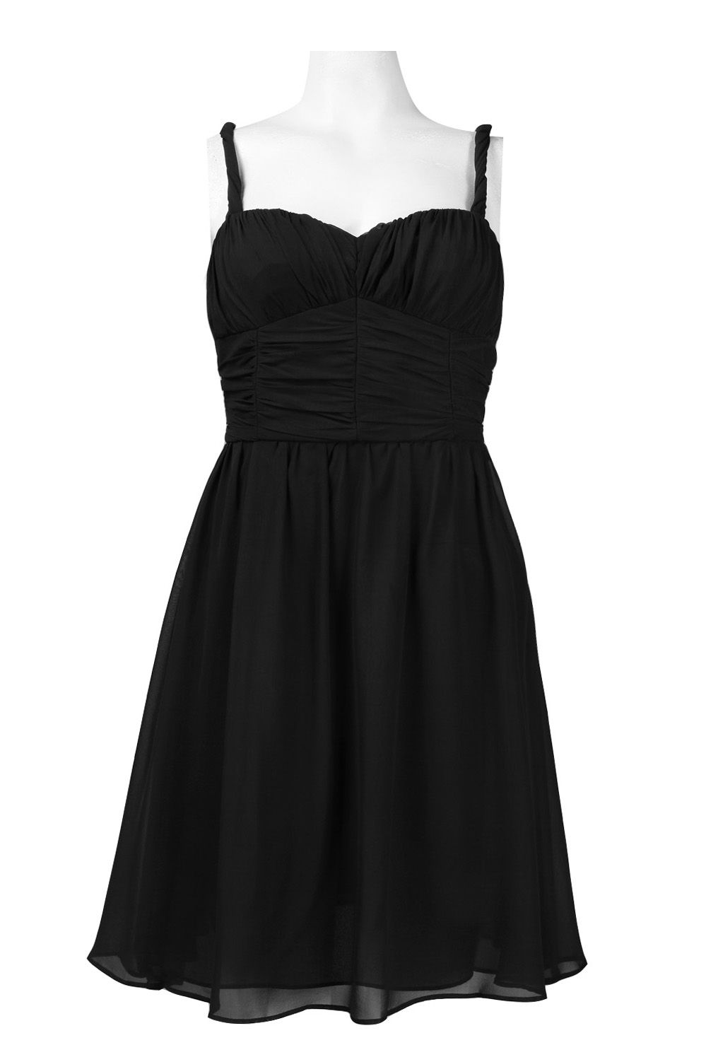Twisted Strap Ruched Waist Silk Chiffon Babydoll Dress. Lined. By Suzi Chin for Maggy Boutique.