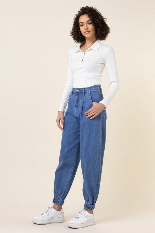 Product Description Rise: 12", Inseam: 24" -STRETCH DENIM, HIGH RISED, FADED WASH, JOGGERS Fabric99% Cotton 1% Spandex vb1944